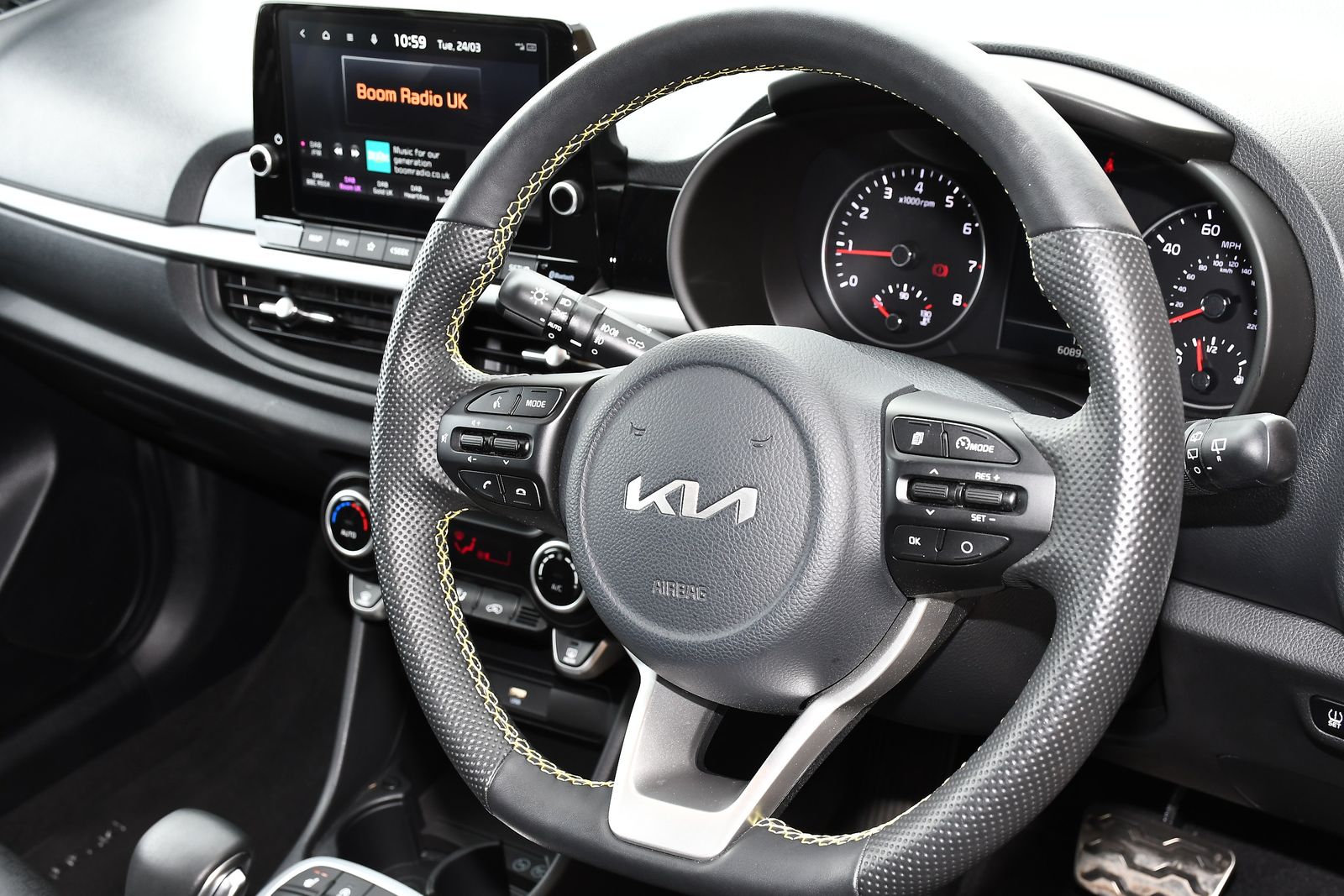 Introducing the stylish Kia Picanto 1.0 DPi X-Line S Hatchback, now available at Stockton Kia in Stockton-on-Tees! This remarkable vehicle is not just a car; it's an experience designed for modern urban living. Finished in a sleek grey colour, the Picanto stands out with its sporty aesthetics and compact charm. Equipped with a powerful yet efficient 66 bhp petrol engine, you’ll enjoy a smooth and responsive drive, making it perfect for bustling city streets. But that’s not all – the Picanto is loaded with fantastic features to elevate your comfort and convenience. Enjoy the warmth of heated seats and steering wheel during those chilly mornings, ensuring every journey begins in luxury. Stay connected and navigate your surroundings effortlessly with the integrated navigation system, while the rear camera and parking sensors provide added peace of mind when manoeuvring in tight spaces. The Picanto also meets Euro 6 emissions standards, offering eco-friendly driving without compromising on performance. Visit Stockton Kia today to experience the perfect blend of style, practicality, and advanced technology with the Kia Picanto 1.0 DPi X-Line S Hatchback. Don’t miss out – your ideal city car awaits!